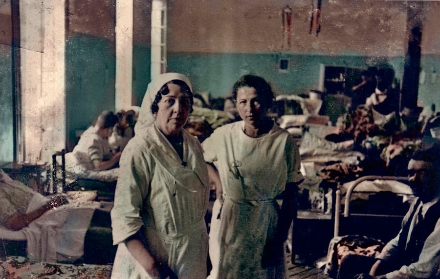 There were 16 Yugoslav women in the Health Services. The oldest was 43, while the youngest were only 22 years old. Most of the female volunteers arrived in Spain in 1937, from the Kingdom of Yugoslavia or countries such as Algeria, Belgium, Czechoslovakia, France, and Uruguay. Some of those women had been active agents of the worker movement or even members of the CPY before leaving for Spain. Those who lacked medical training attended a preparation course beforehand. They worked in the hospitals of Murcia, Albacete, Benicasim, Denia, Madrigeras, Vic, and other cities. Avgust Lesnik writes: “There were 16 women: doctors Adela Bohunicki, Nada Dimitrijević-Nešković, and Dobrila Mezić-Šiljak, [as well as the nurses] Ana-Marija Basch (Baš), Olga Dragić-Belović (Milić Milica), Elizabeta-Liza Gavrić, Marija-Peči Glavaš, Marija Habulin, Lea Kraus, Tereza Kučera, Lujza Pihler (Demić Borka), Ottilia Reschitz-Zanoni, Ana Seles-Brozović, Kornelija Sende-Popović, Eugenia Simonetti, and Marija Šneeman”.